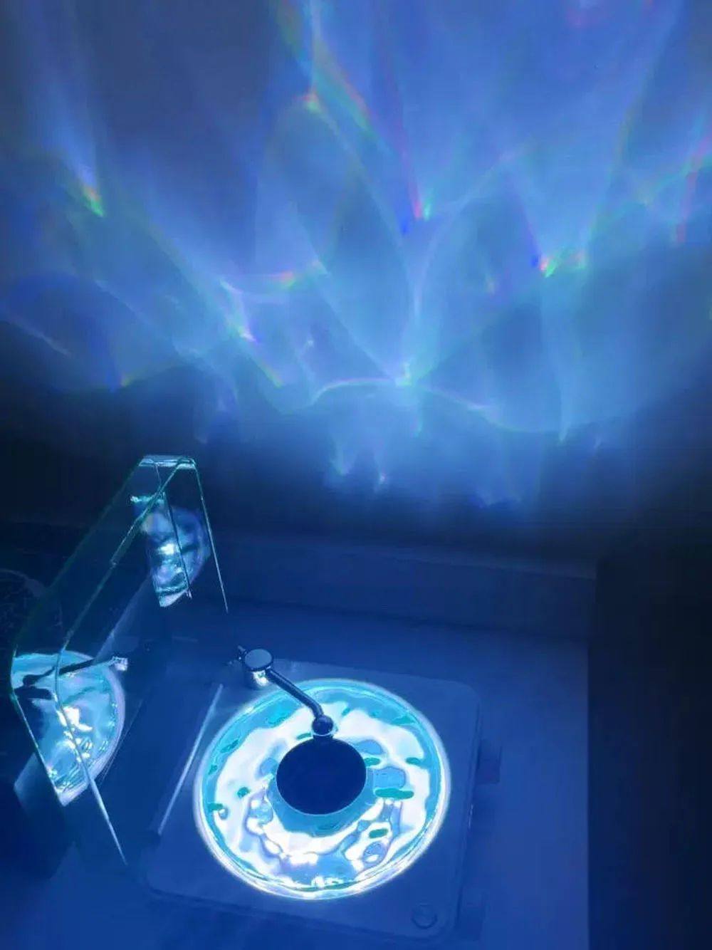 RGB lighting: Transparent water ripple turntable rotates with music, creating ambient lighting; screen-off design for nighttime use.