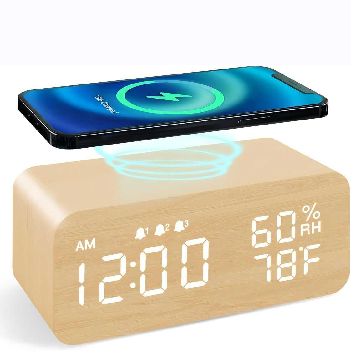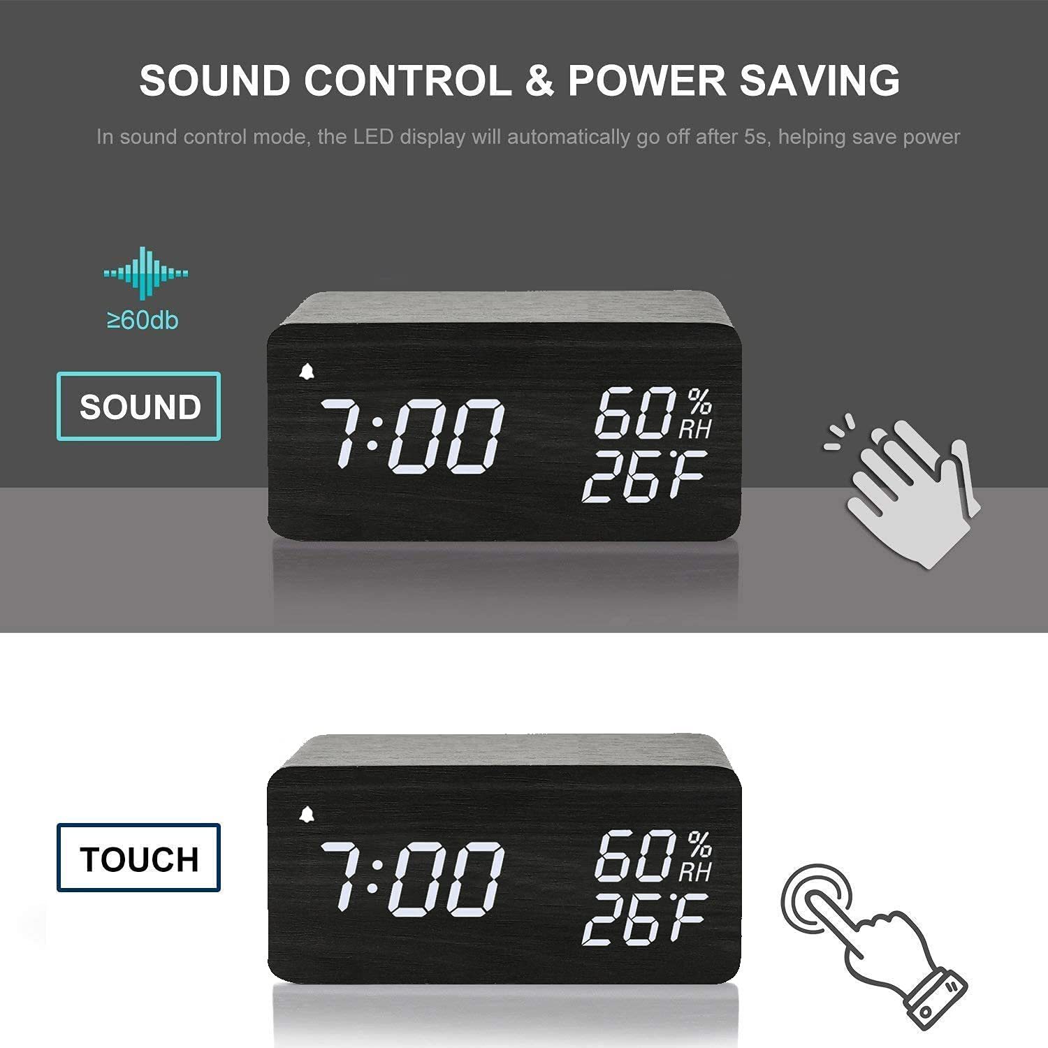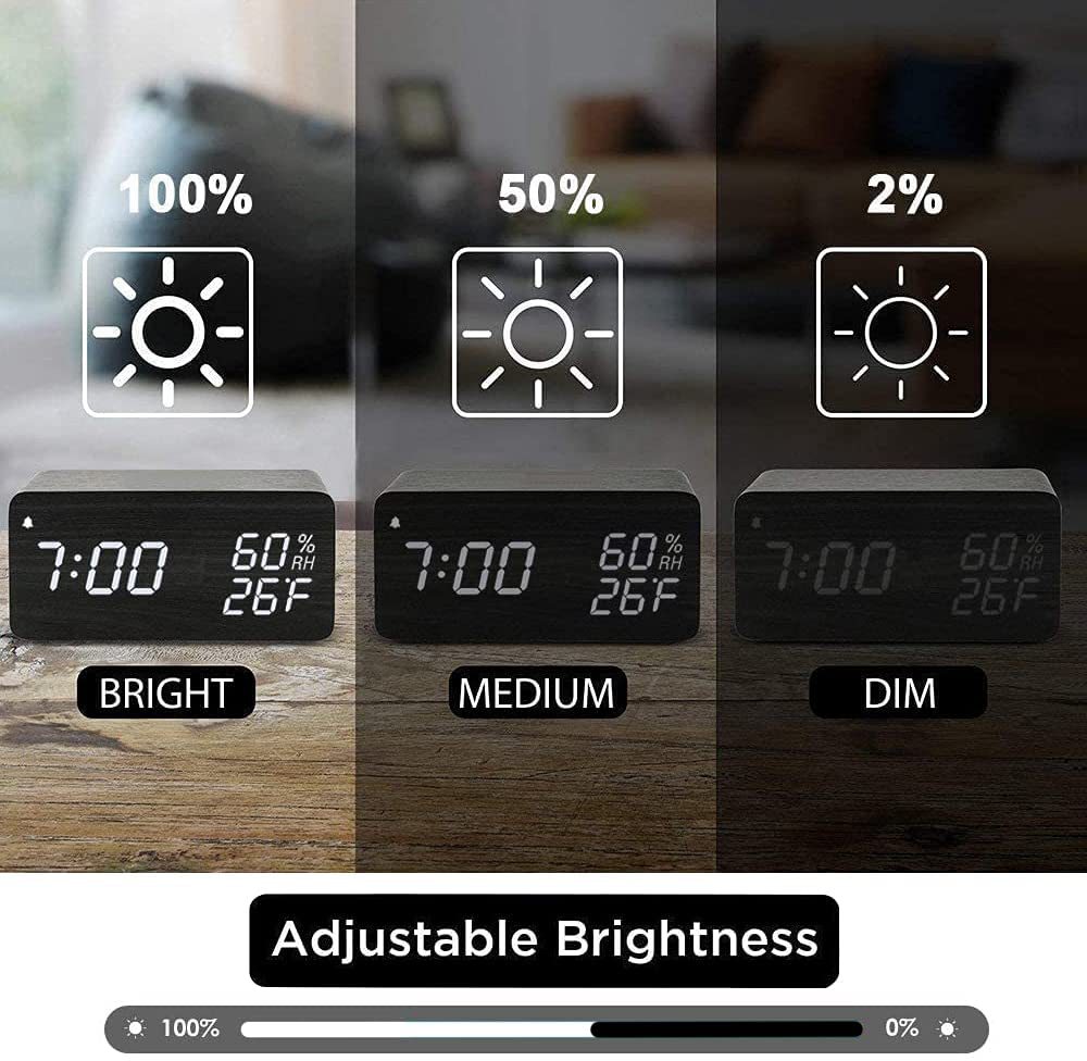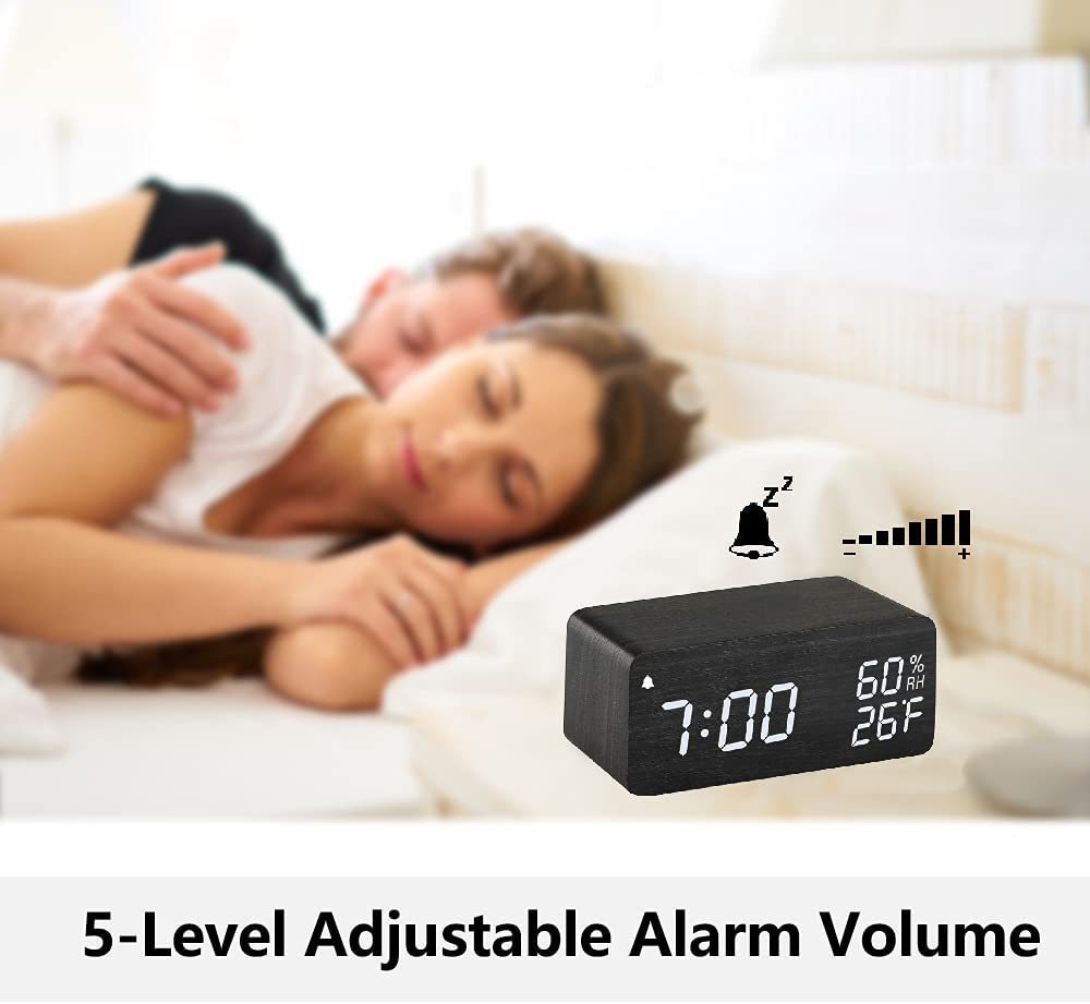 Wooden Digital Alarm Clock with Humidity Display