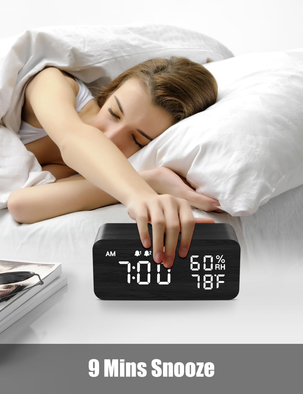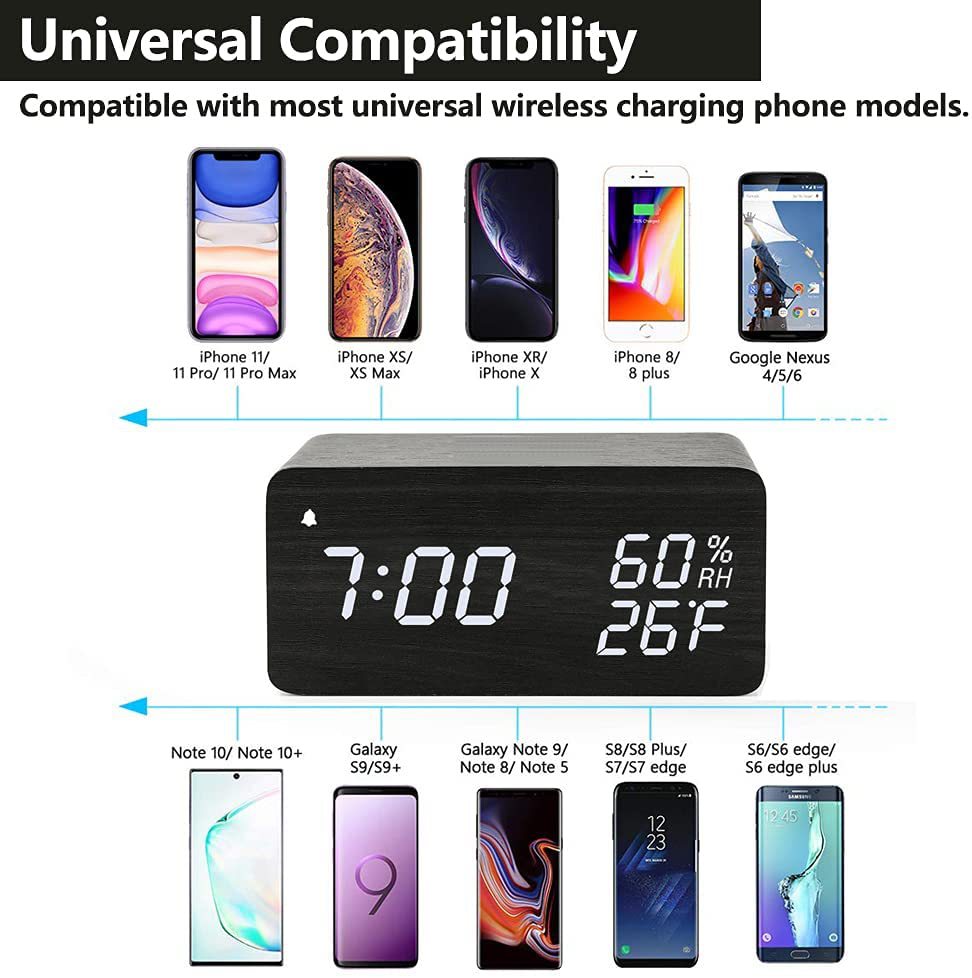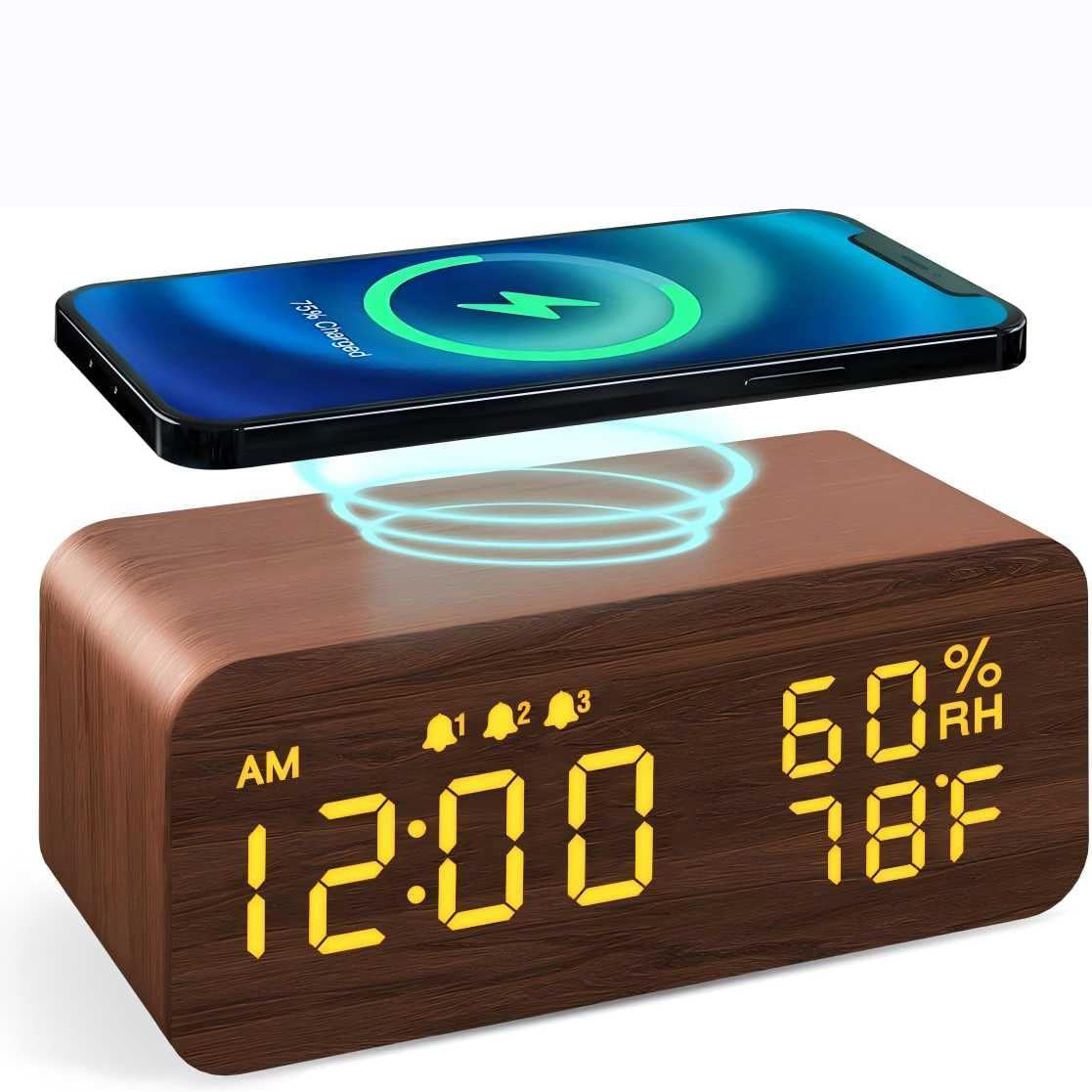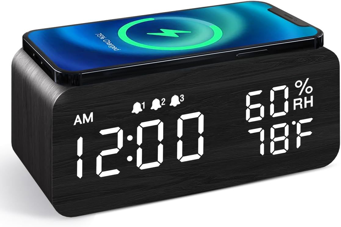Wooden Digital Alarm Clock with Humidity Display